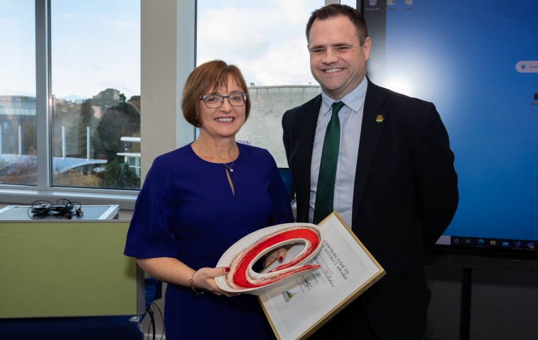Following the lunch and a special video message from An Taoiseach Leo Varadkar, Cathriona Hallahan , former Managing Director of Microsoft in Ireland was presented with the award for special contribution to Sandyford Business District by Minister Richmond.